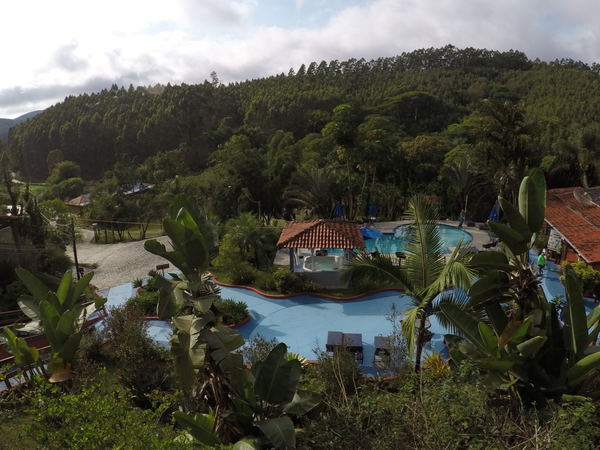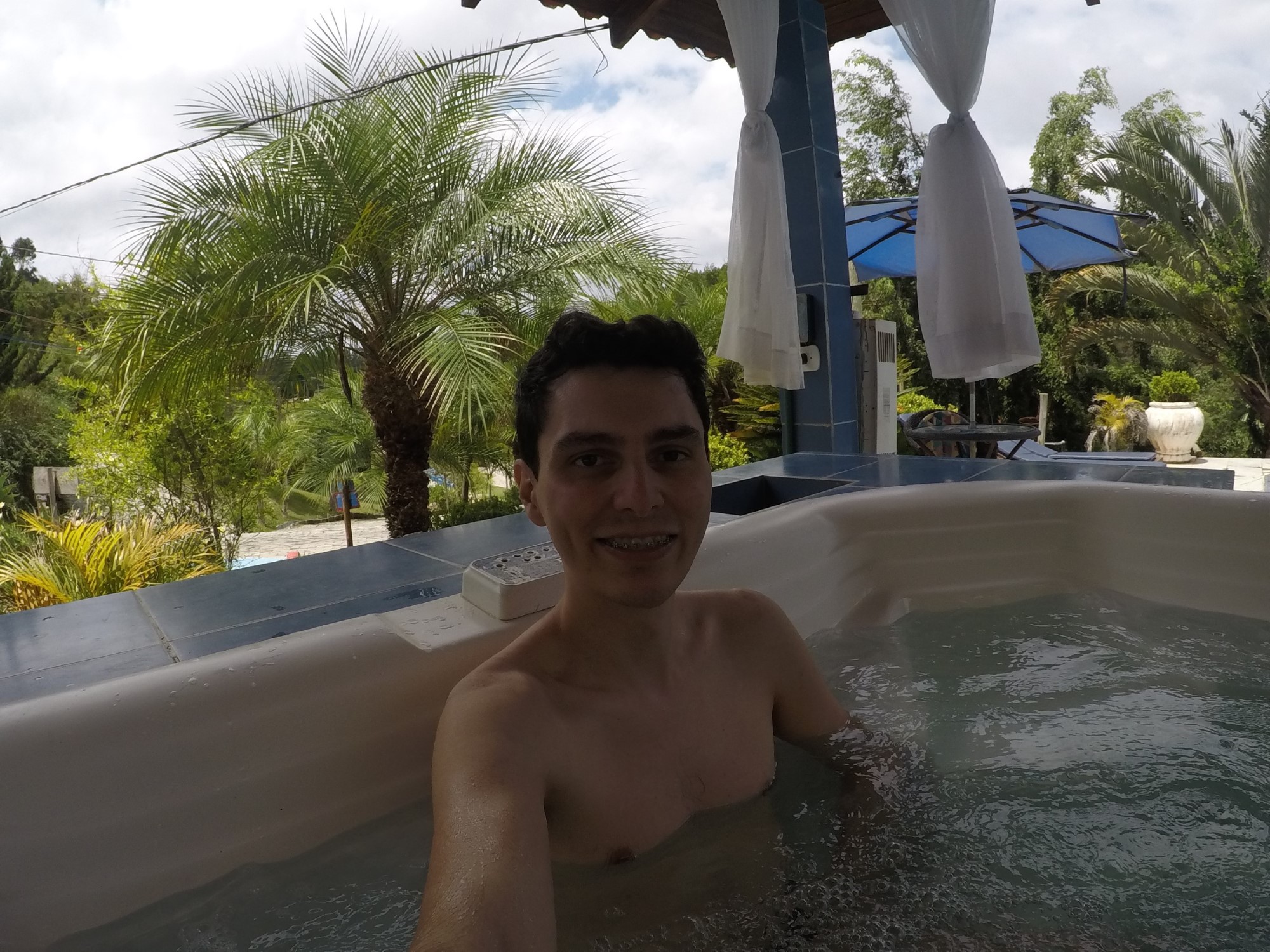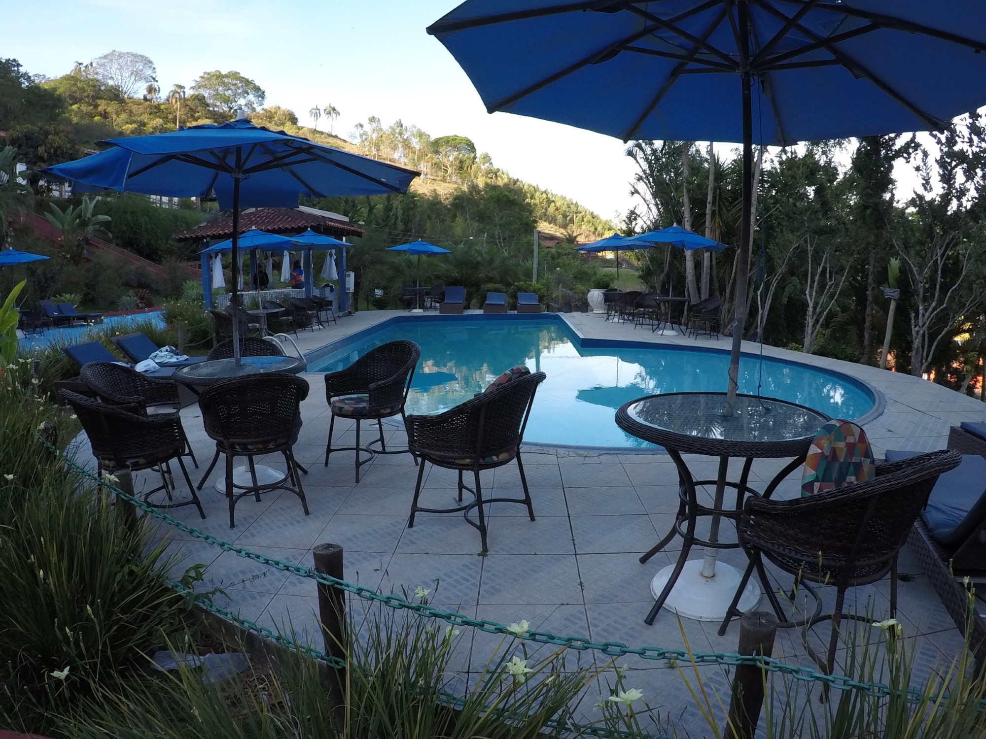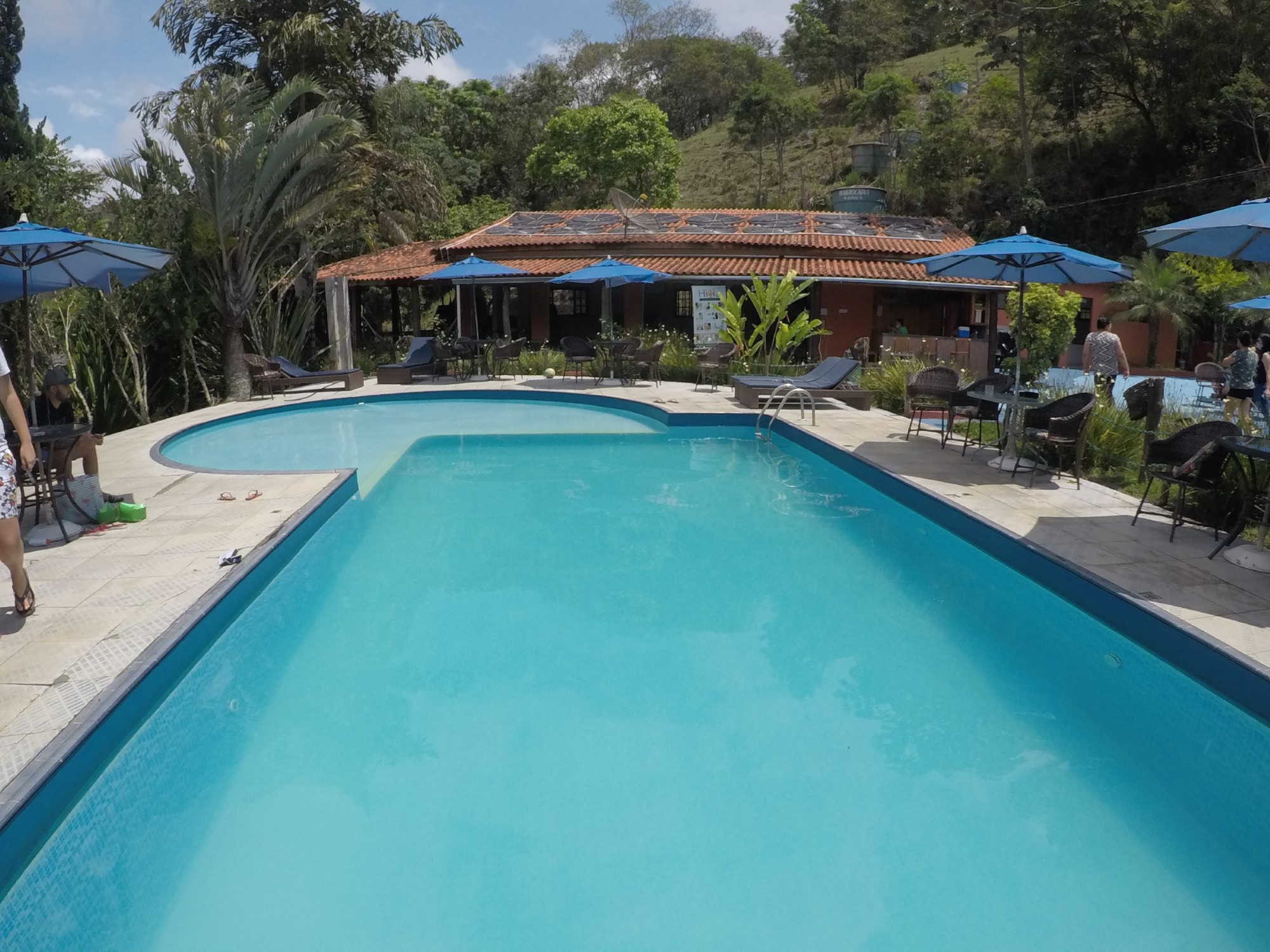Esta piscina fica do lado de fora, no ambiente aberto. Como citei anteriormente, a climatização não estava funcionando, pois estava natural, ou seja, bem gelada.