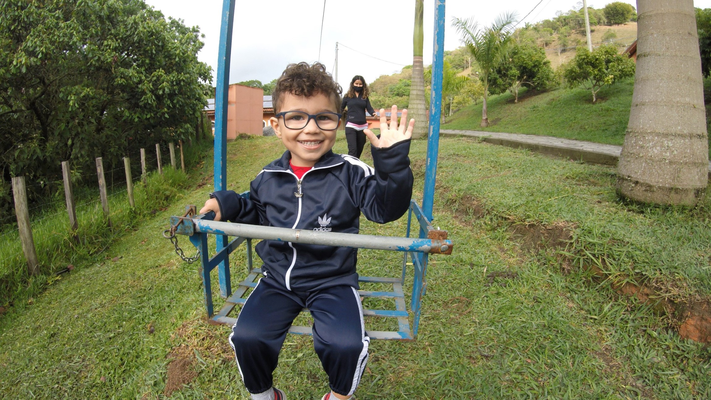 Ao lado dos quartos tinha uma mini tirolesa, que foi a diversão pelas manhãs das crianças.