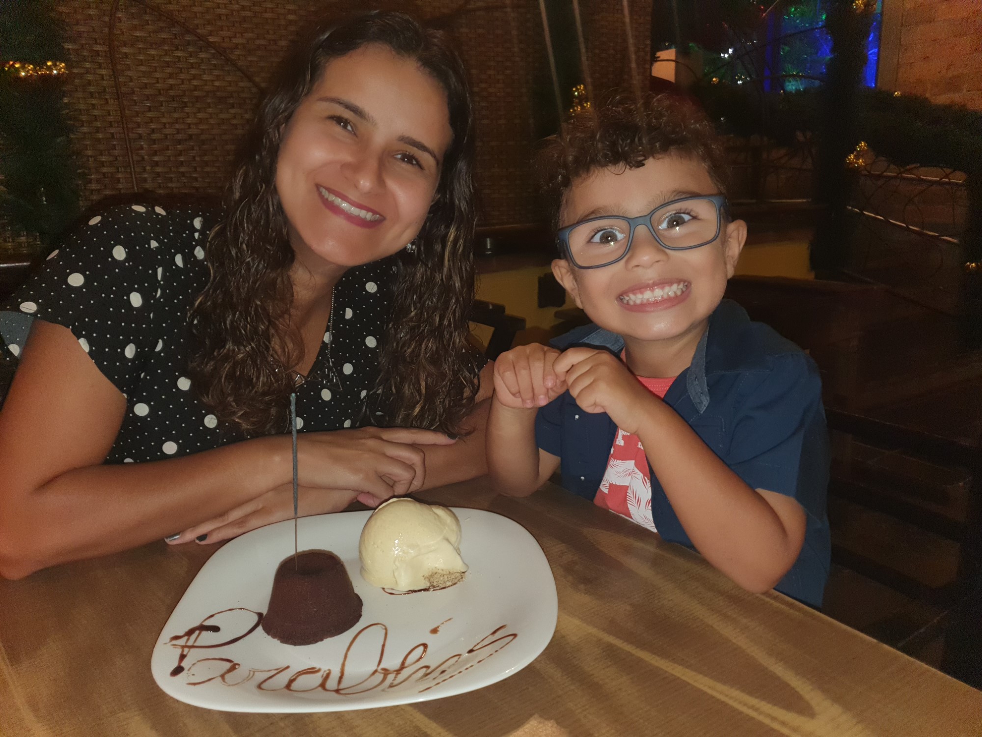 Como era aniversário da patroa, o local ofereceu como cortesia um Petit Gâteau com uma velinha para cantarmos o parabéns! O Arthur cantou em alto e bom tom haha!