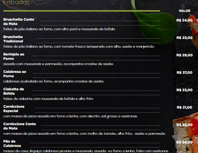 Os demais itens é possível conferir pelo próprio site da Forneria Canto da Mata.