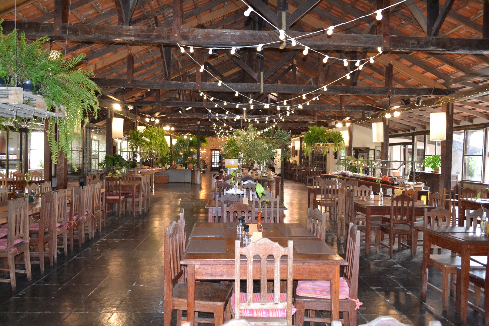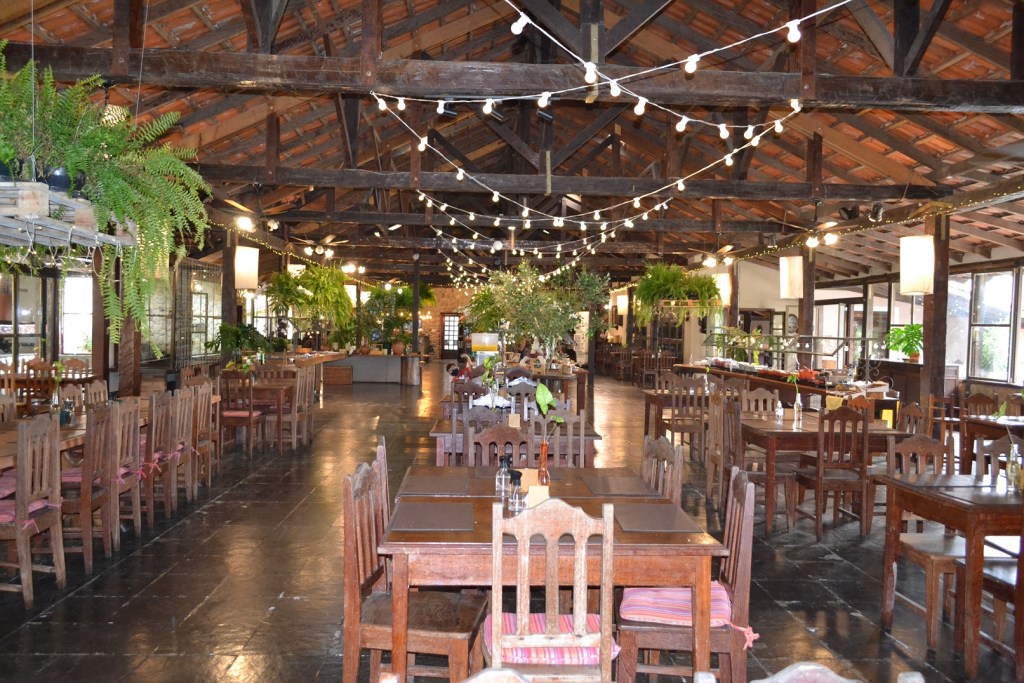 O espaço é realmente bem amplo e rustico, lembrando o ambiente de uma fazenda na roça. Deve acabar mais de 100 pessoas no salão. Pelo tamanho do salão, nós decidimos ficar bem próximos do local que estava sendo servido as comidas, se não teríamos que nos deslocar bastante para ficar repetindo. Não é nada de outro mundo, mas com uma criança que vai comendo um pouco de cada coisa e também pensando em salada, prato principal e sobremesa, teríamos que nos levantar pelo menos 4 a 5 vezes por refeição. Vamos otimizar não é mesmo?!?!