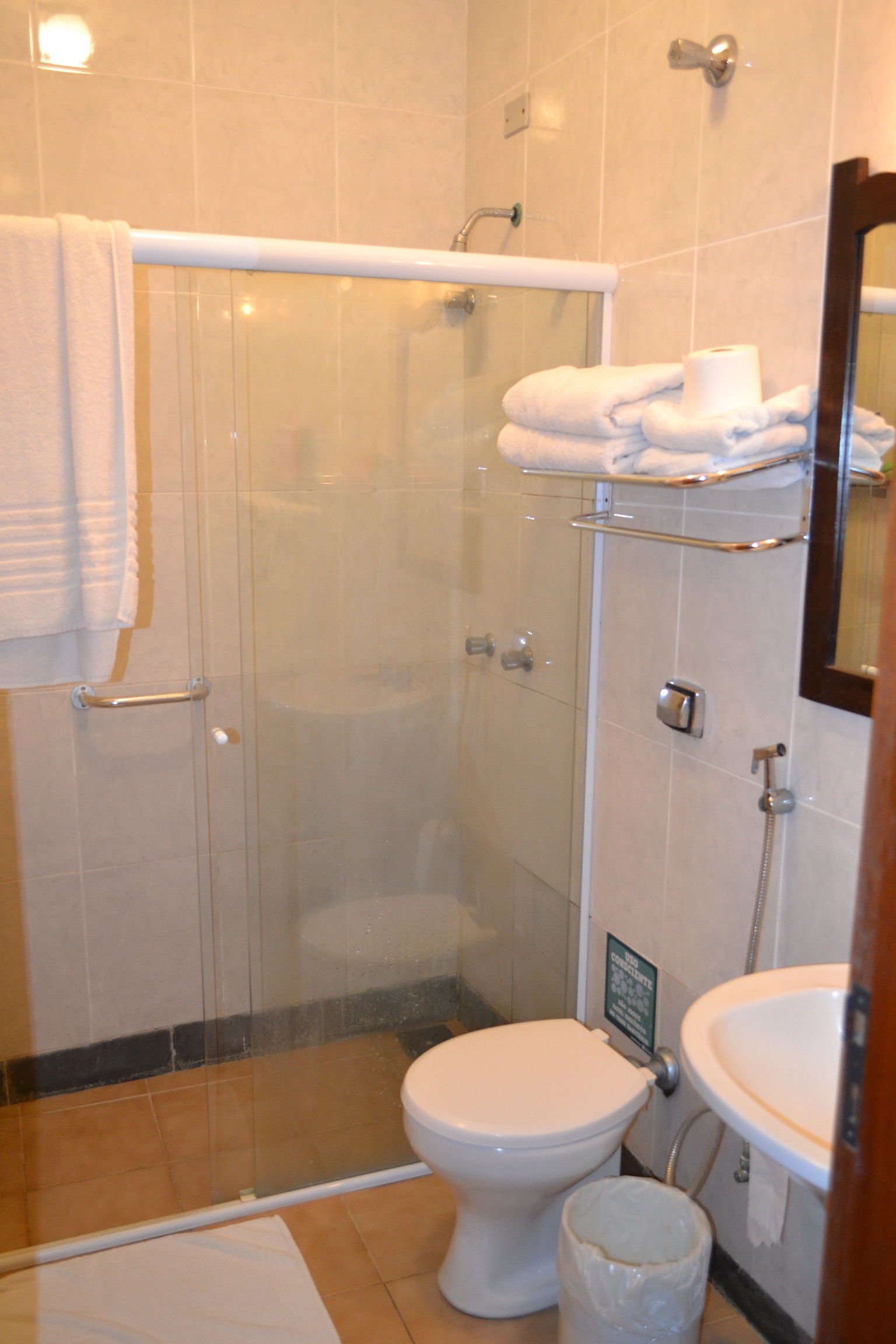 O nosso quarto era bem amplo, estruturado, com uma cama de casal e uma de solteiro. O banheiro também é bem confortável, não há nada que temos para pontuar de negativo. Possui ar condicionado e também ventilador de teto.