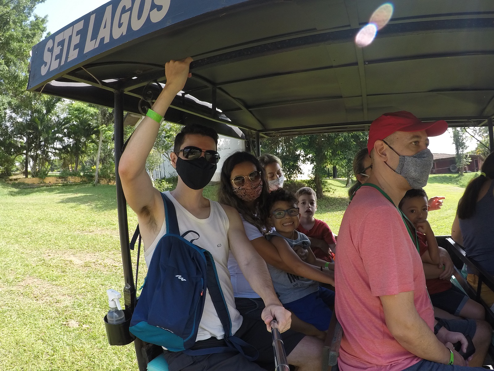 Bem em frente a casa da árvore, tem um dos 7 lagos da fazenda onde é possível andar de pedalinho e também pescar. Acabei não pescando, mas dei uma grande volta com a Paty e com o Arthur! Esse pedalinho é todo diferente, não há volante então para virar é através de uma alavanca que só vai para a direita e esquerda, logo tem que ficar fazendo o controle pela mão.