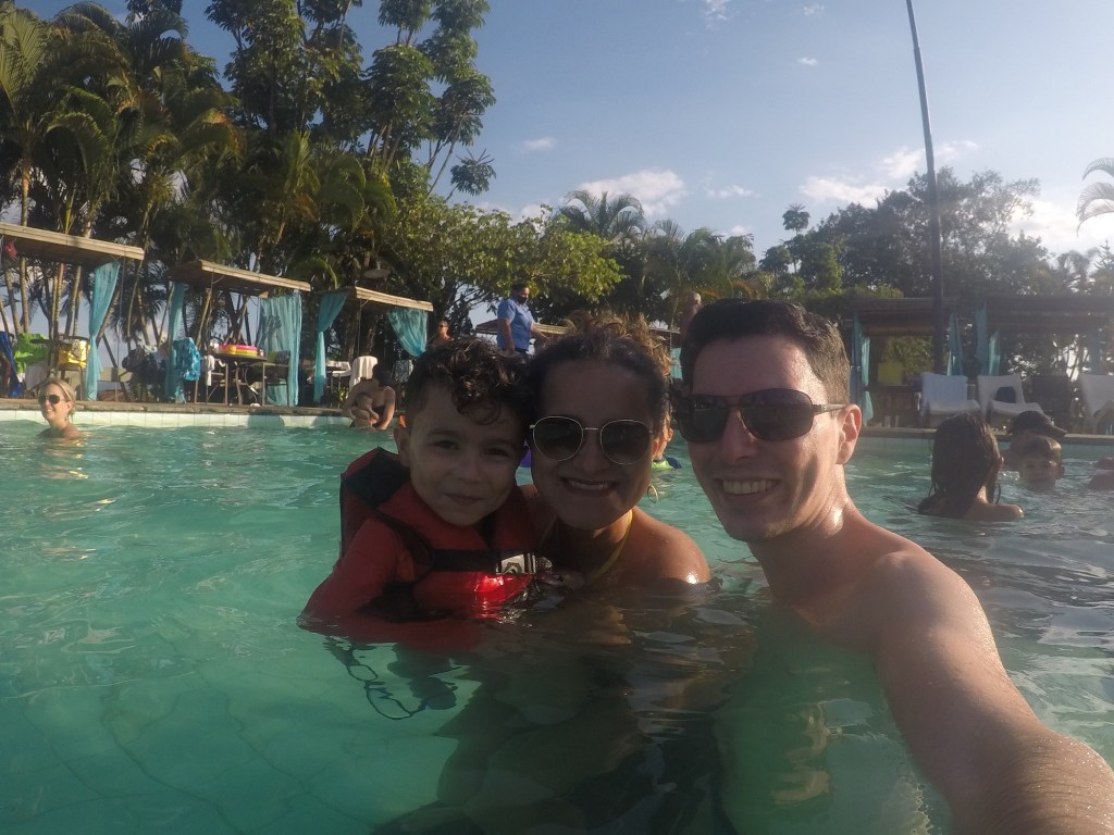 No primeiro dia que chegamos essa piscina, mesmo sendo gigantesca estava aquecida! Passamos a tarde nela de tão gostosa que estava. Até mesmo o Arthur que costuma ser mais chatinho com a questão da água gelada entrou e ficou tranquilamente conosco. Não pegamos no feriado nenhum dia com grande lotação e até mesmo por isso eu creio que o tamanho da piscina comportou bem as pessoas.