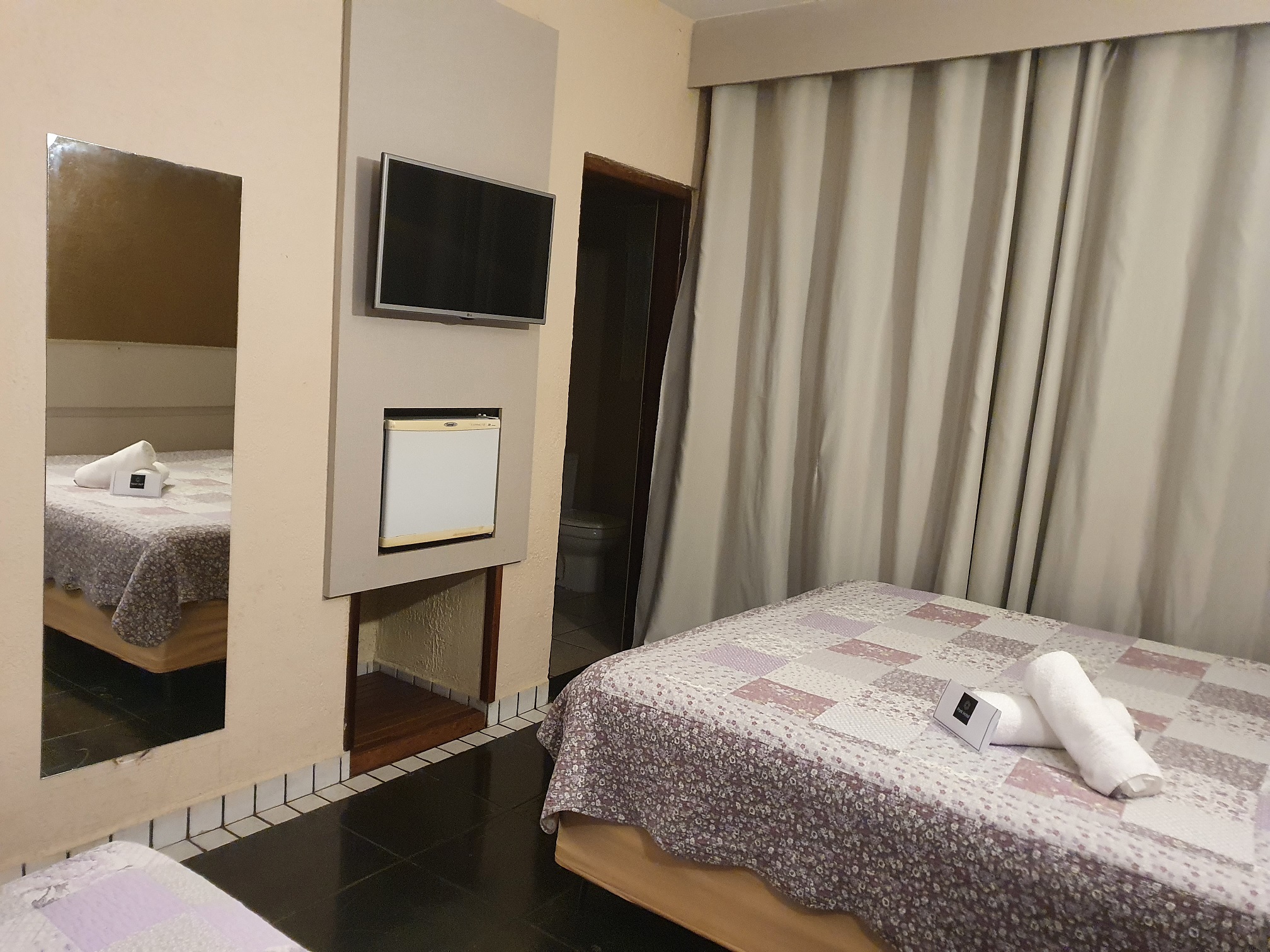 A sala é bem ampla, mas é extremamente mas extremamente sujo. O chão está mega encardido e por vários espaços mais escuro, no canto das paredes, há cheiro de mofo.