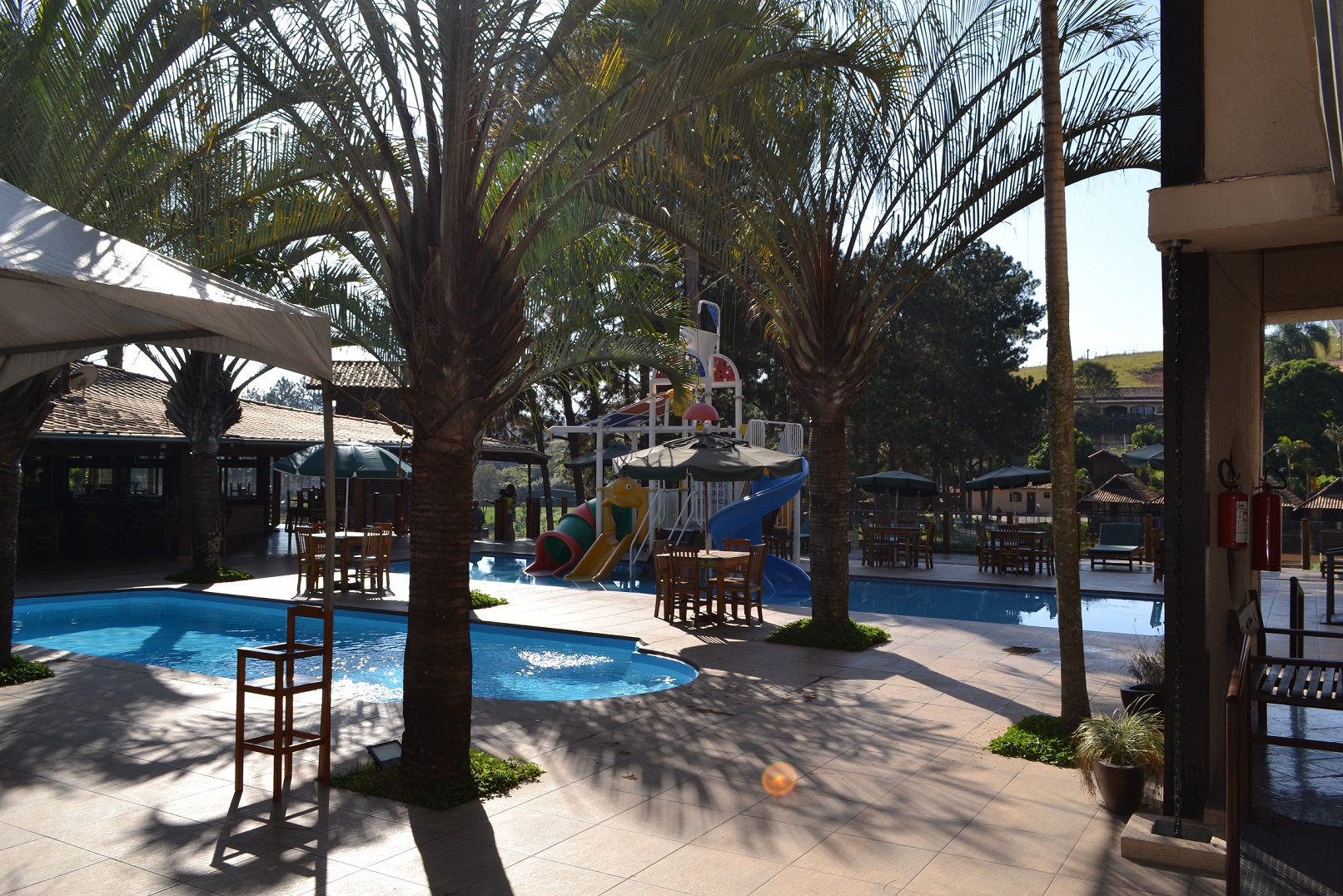 O hotel conta com 3 piscinas, sendo uma delas aquecida. Todas as piscinas são feitas para as crianças, já que são rasas e pequenas.