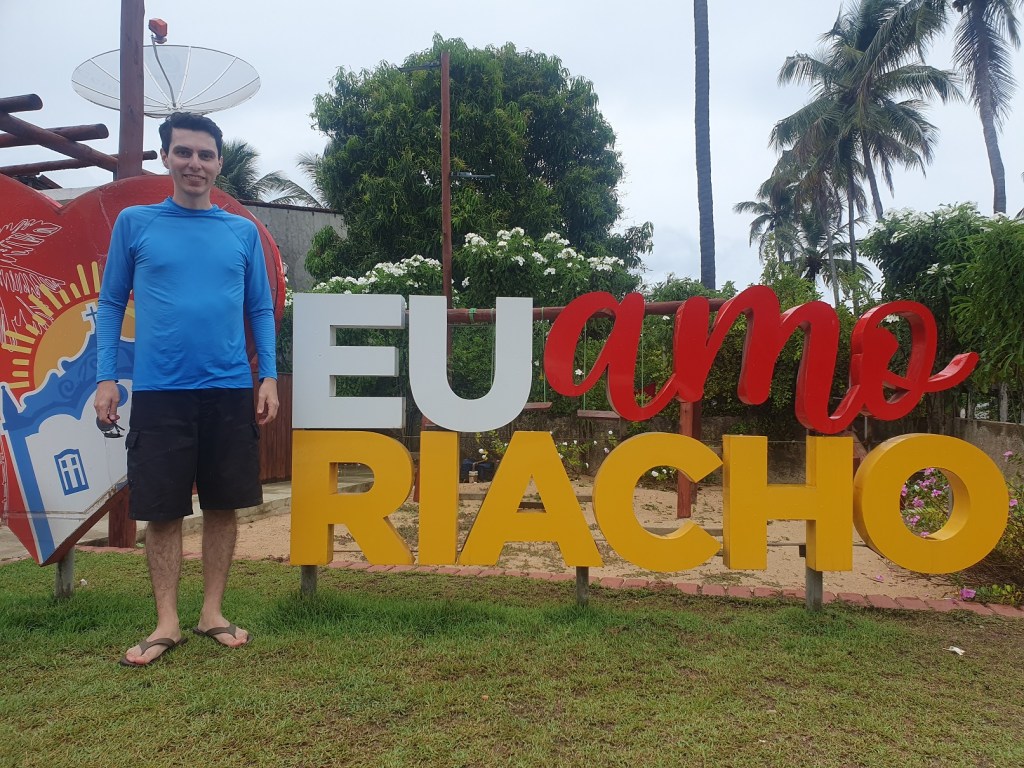 Agora sim, entrando em definitivo no nosso tour, iremos falar neste post de nossa experiência no Litoral Norte, na Praia do Riacho. A Praia do Riacho faz parte da Rota Ecológica de Milagres. Ela fica a cerca de 40km de Maragogi e 80km de Maceió. A praia não tem ondas e é excelente para quem está com criança. Por ser quase deserta é possível avistar diversos coqueiros e vegetações próximo da areia. O mar é bem verde, fazendo com que seja mais uma daquelas paisagens únicas que citei no inicio do post. E por ser uma praia sem ondas, no começo é até difícil se ambientar, para quem está acostumado a ficar o tempo inteiro pulando ondas, rss.