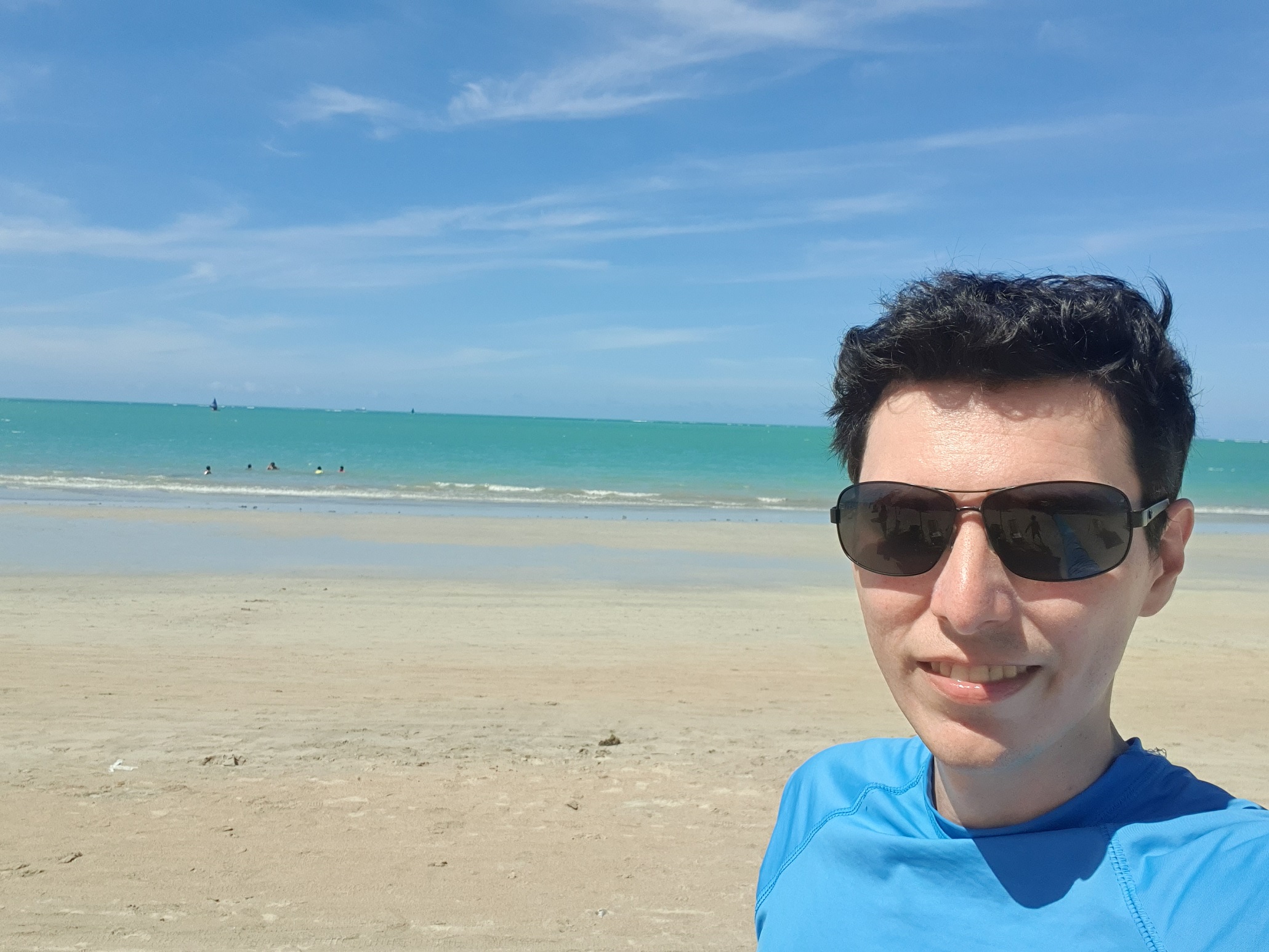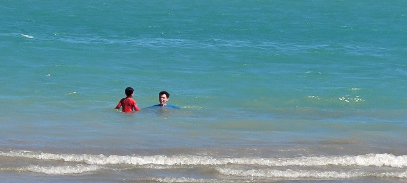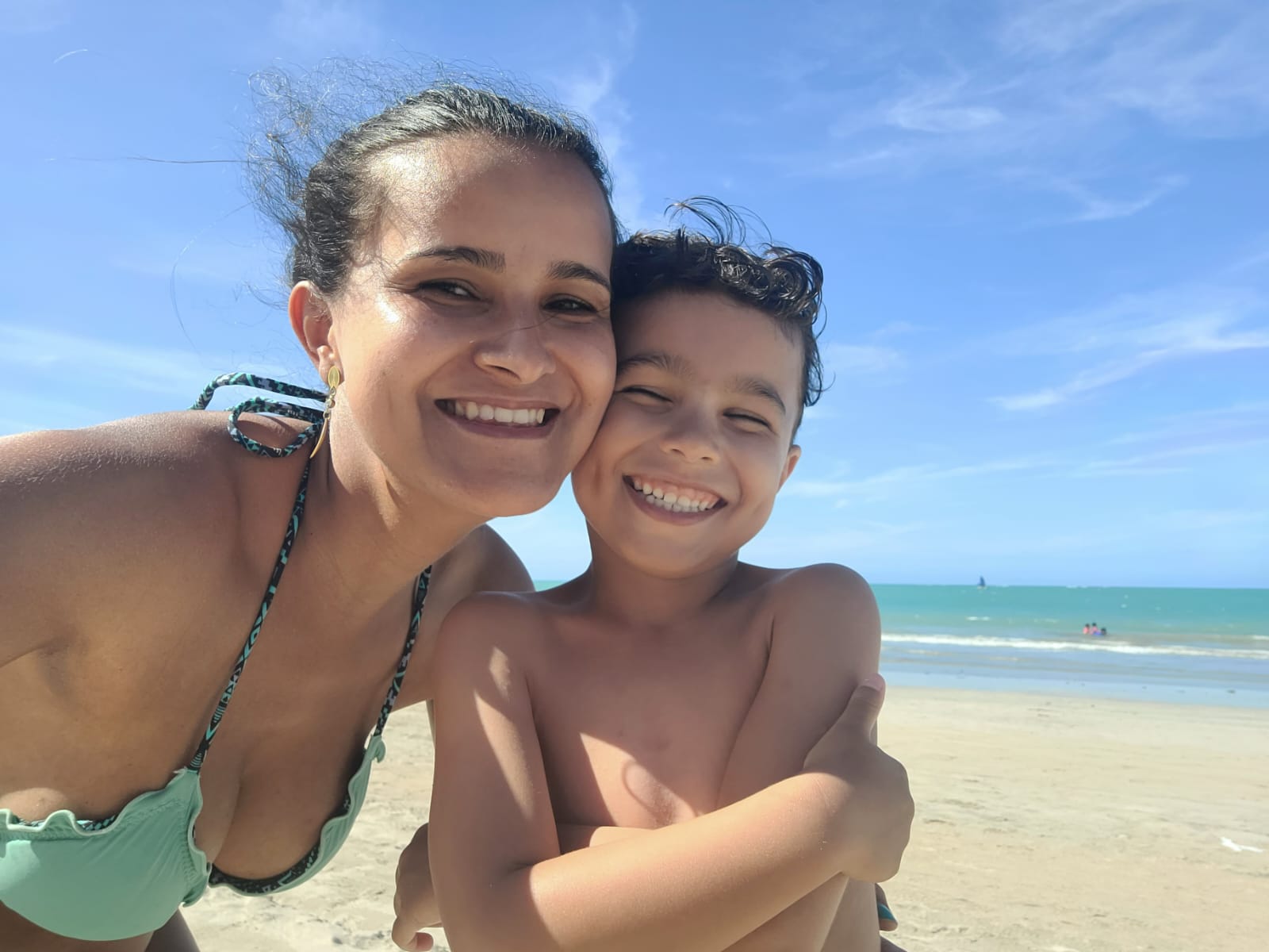 Nos dirigimos para a praia e para a nossa surpresa, essa sim já é bem parecida com as praias que temos em São Paulo. A faixa de areia é imensa, mas pensa em algo largo mesmo, é impressionante a quantidade de faixa de areia que tem na Praia de Pajuçara. Logo que entramos na faixa de areia, vimos uma mãe e um filho com diversas cadeiras e guarda sol. Como não tem barraquinha dentro da praia, aqueles carrinhos de comida como em São Paulo, há essas pessoas que alugam os itens para que você possa levar os comes e bebes e assim passar o dia na praia. O aluguel de 3 cadeiras e 2 guarda sol saiu por R$ 35,00 o dia inteiro. Confesso que achei que seria mais de R$ 100,00. Quando chegamos tinha 2 cadeiras e 1 guarda sol, como estávamos em 4 e o Vitor precisaria dormir ao longo do dia, pedi uma cadeira espreguiçadeira e outro guarda sol, e literalmente foi R$ 5,00 por item. Senti que se eu pressionasse conseguiria ainda um desconto, mas de verdade o valor estava muito barato e não quis explorar a família. Topei e o filho dela prontamente organizou tudo para nós próximo da água para o Arthur poder brincar.