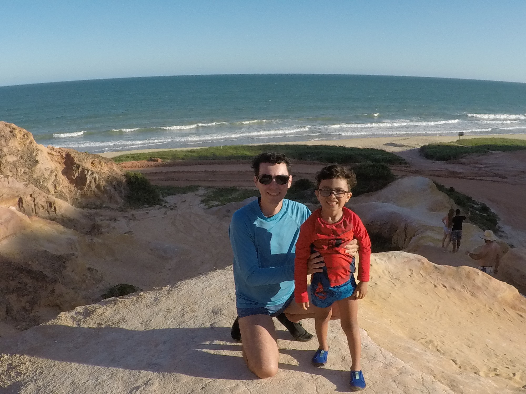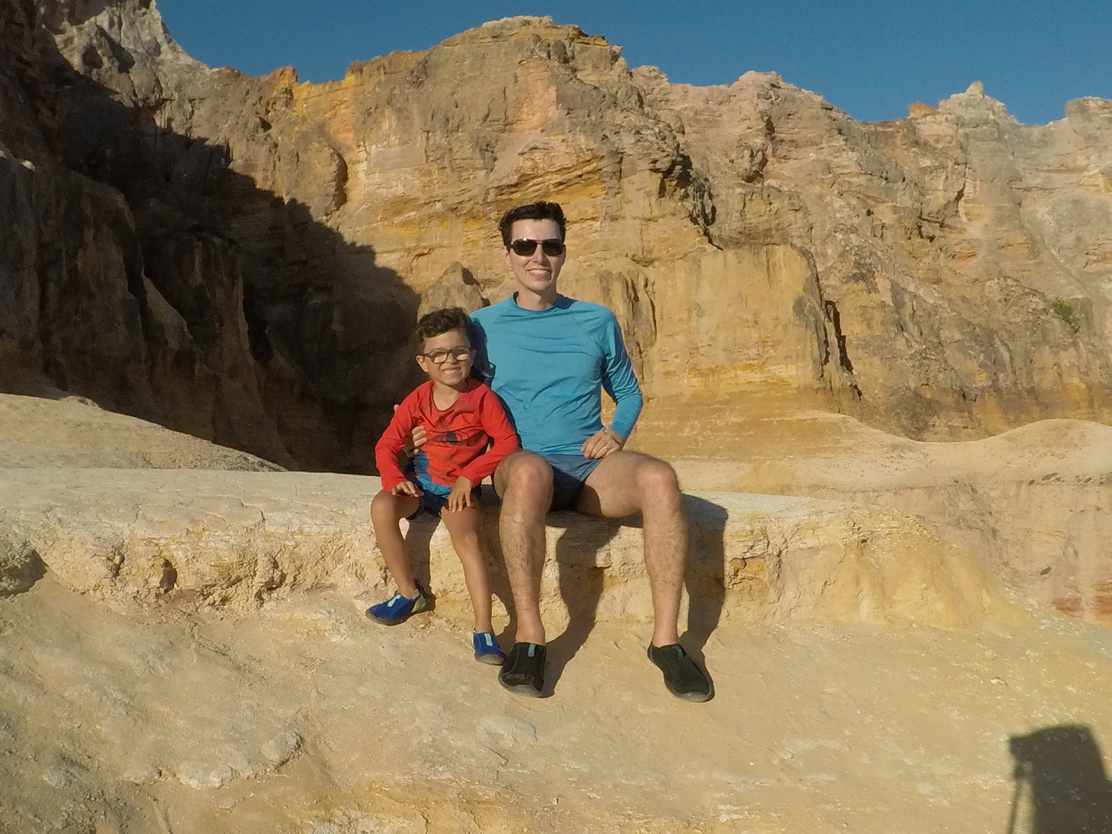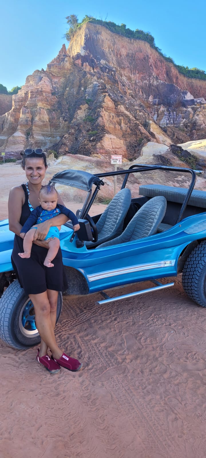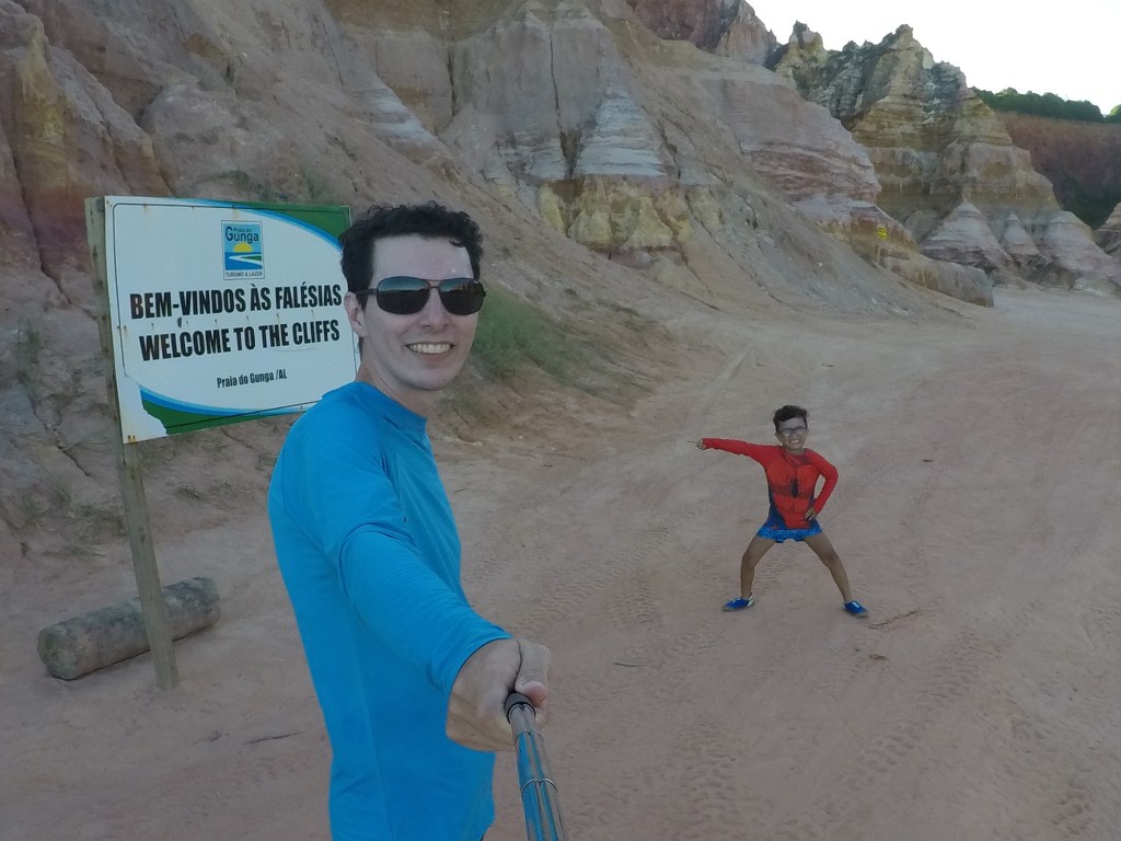 Andamos cerca de 20 minutos até chegarmos a nossa primeira parada que é a famosa Falésias do Gunga! O local é lindo, são uns paredões de rocha vermelha enormes. O local possui 3 locais que é possível explorar mas com avisos de risco de deslizamento de pedras. Não entrei com o Arthur mais afundo, apenas ficamos observando para não correr nenhum risco.
