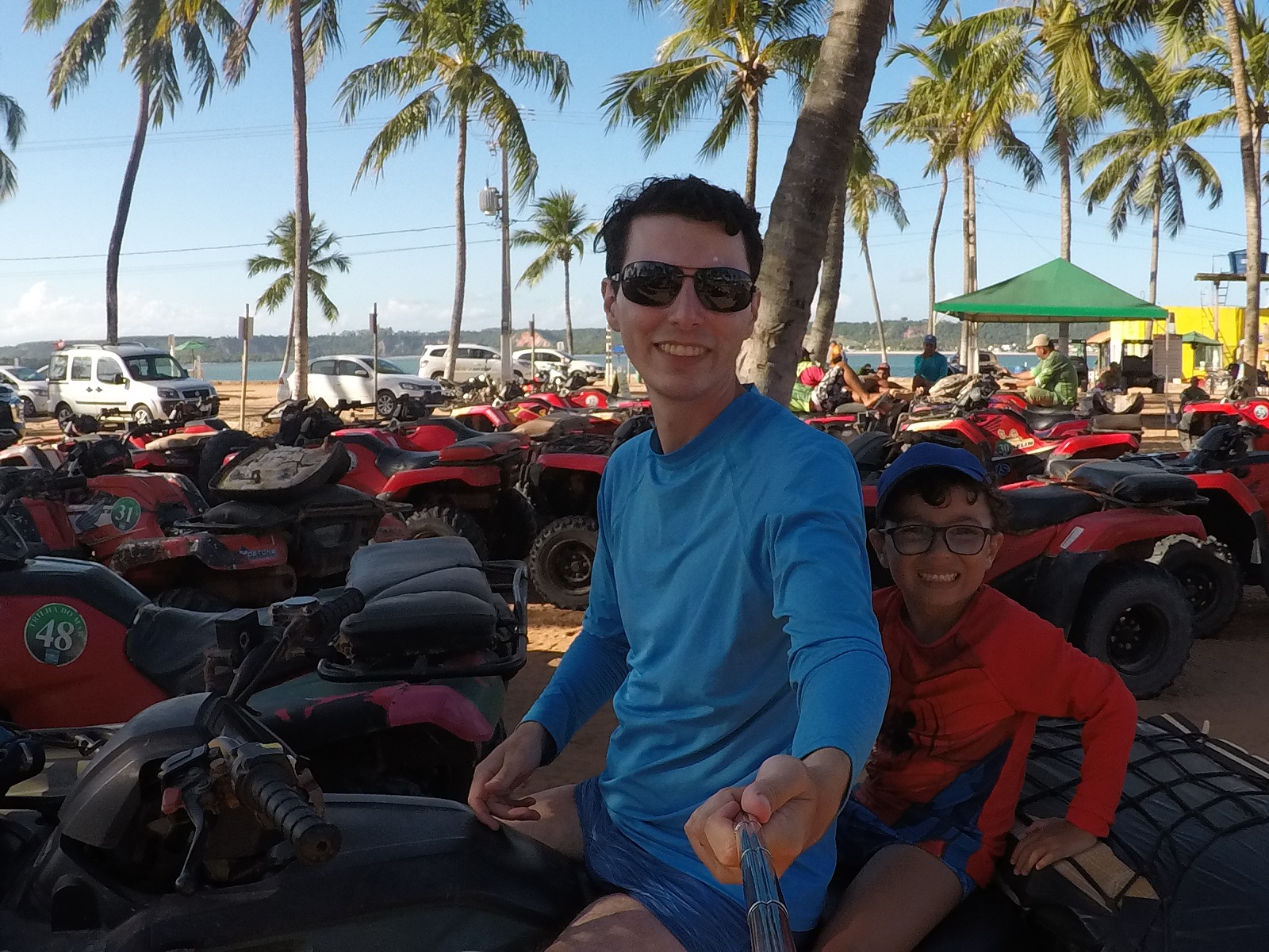 O que eu não sabia era que eles só trabalhavam com dinheiro, não aceitam cartão de crédito e nem PIX. Compartilhei esse problema com o atendente do Gunga Beach Club, mas já estava aceitando a idéia que não conseguiríamos fazer o passeio, pois eu não estava com R$ 225,00 em dinheiro vivo, pensando que R$ 150,00 seria para que eu e o Arthur fossemos no Quadriciclo, e R$ 75,00 para a Paty ir com o Vitor de buggy. Esse atendente deu um jeito e conseguiu me trazer o valor em dinheiro e eu fiz o PIX pra ele, notem, PRA ELE. Ele que deu um jeito e conseguiu o valor e eu paguei no PIX dele. Fiquei impressionado. Quando estávamos para sair do Beach Club em direção o passeio, fiz questão de chamar os donos e elogiá-lo, pois de fato valeu a pena.