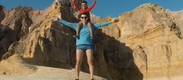 Andamos cerca de 20 minutos até chegarmos a nossa primeira parada que é a famosa Falésias do Gunga! O local é lindo, são uns paredões de rocha vermelha enormes. O local possui 3 locais que é possível explorar mas com avisos de risco de deslizamento de pedras. Não entrei com o Arthur mais afundo, apenas ficamos observando para não correr nenhum risco.