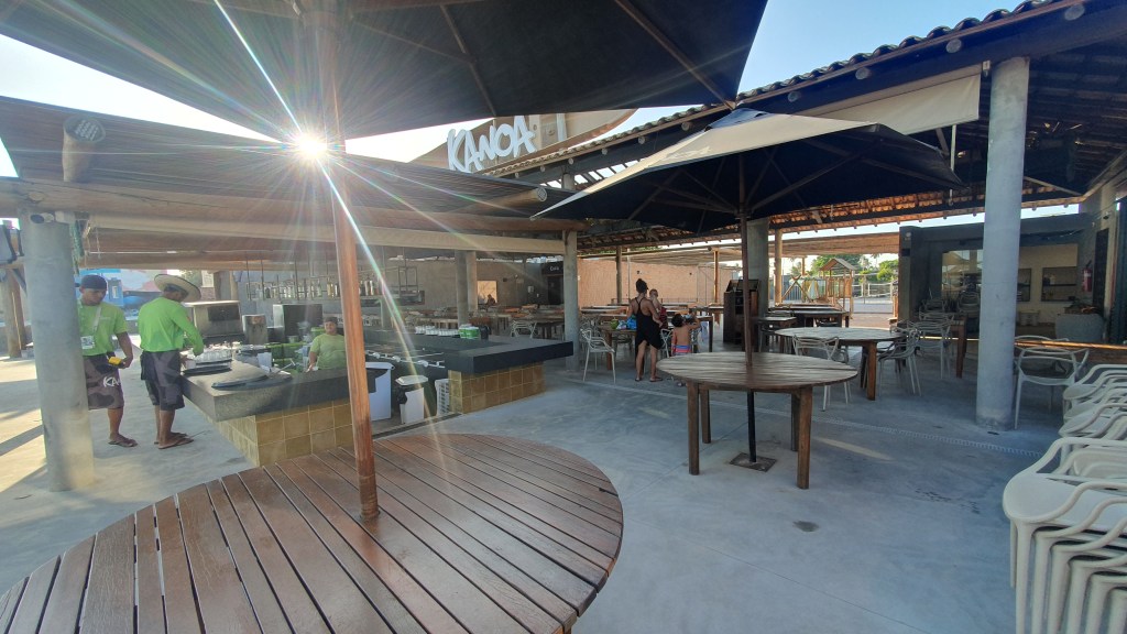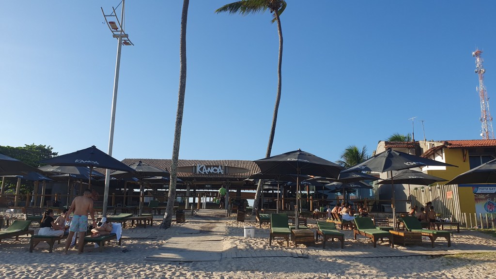 Agora entrando em nosso ponto de apoio, o Kanoa Beach Club, foi de fato uma grata surpresa. Estrutura impecável tendo inclusive recreação infantil. Foi o único Beach Club em que encontramos essa estrutura. Pagamos R$ 50,00 por adulto para entrar sem reversão em consumação.