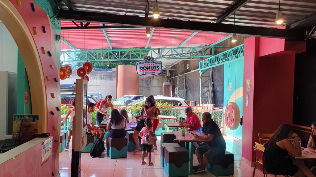 No Pophaus também é possível ganhar as calorias que perdeu nos trampolins comendo deliciosas Donuts no O Tradicionalíssimo. Nós não comemos, mas pelas recomendações que já ouvimos, o sabor é maravilhoso. Então fica a dica!