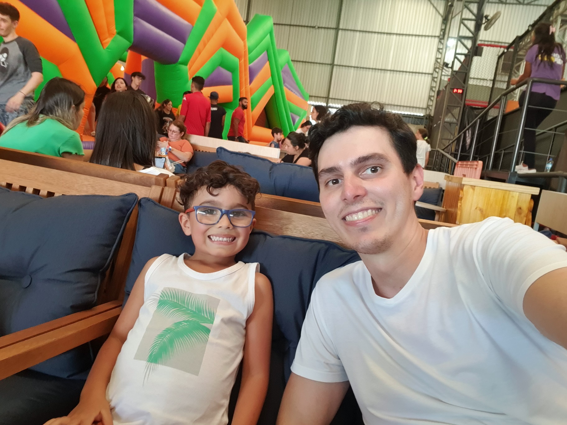 O Pophaus é bem maior que o Impulso Park proporcionando uma experiência completa. Conseguimos nos divertir muito. O Arthur inclusive ficou bem cansado haha. Depois de 1h ele pediu pra sentar e descansar um pouco. Fizemos uma pausa de 10 minutos e depois voltamos à brincar.