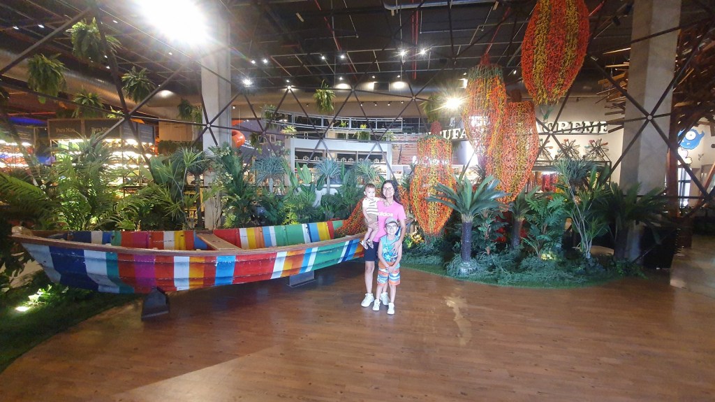 Do lado de fora, possui a tão famosa Montanha Russa e também um espaço com algumas plantas e também bananeiras. Essa brincadeira não poderíamos deixar passar, não é mesmo? O ingresso custa R$ 20,00 por pessoa, para uma diversão de 30 segundos rsss, como podem ver no vídeo. O interessante é que há 2 formas de ir na Montanha Russa, nas cabines que ficam girando de lado e a que gira de ponta cabeça. O Arthur foi com a Paty nesse que gira de lado e ainda assim acharam bastante radical.