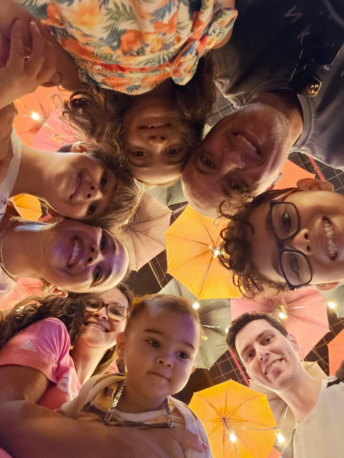 O local tem uma decoração linda, com diversos guarda chuvas coloridos pendurados, lembrando muito os guarda chuvas que vimos em Recife e Olinda – PE.