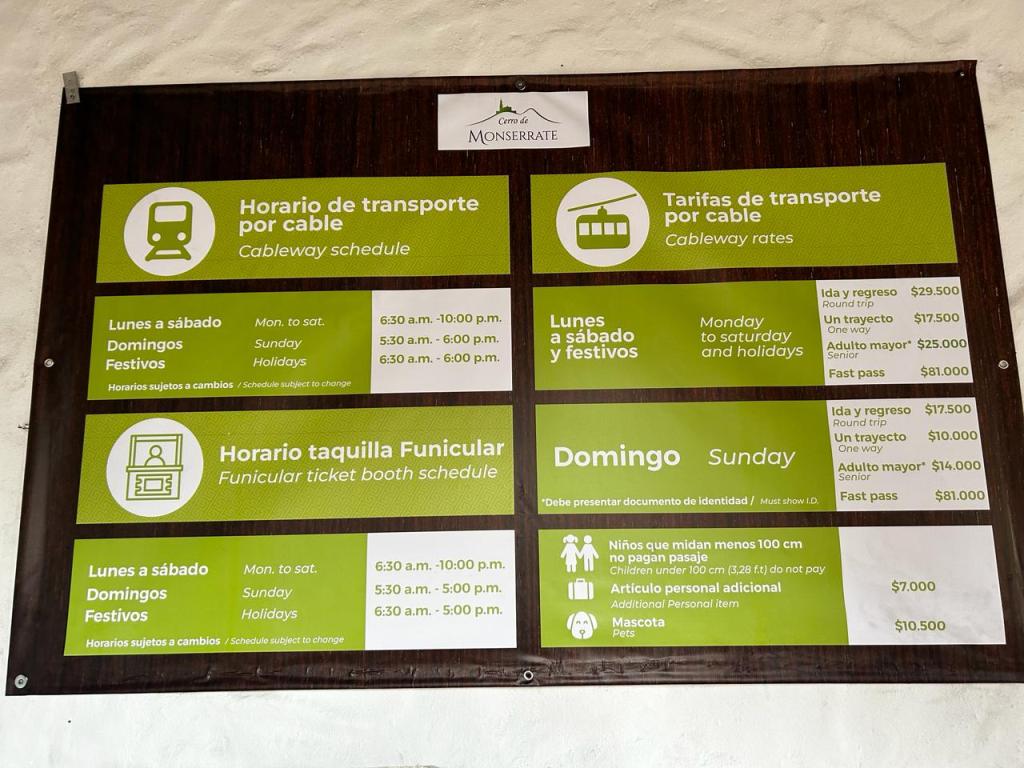 O ponto de acesso a estação Monserrate fica próximo à Candelária (centro histórico). Para chegar até o mirante, há 3 formas: de teleférico, funicular, ou caminhando através de uma trilha. A tarifa é a mesma, pois o custo é o da entrada.