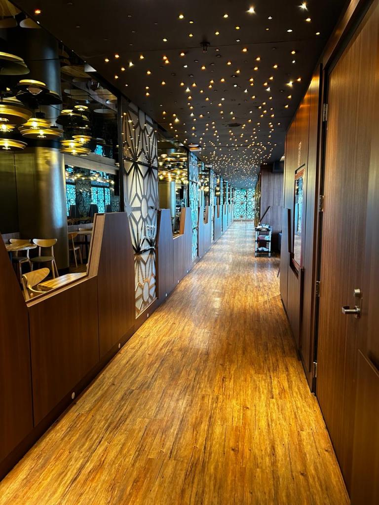 Há uma grande variedade de petiscos logo na entrada, assim como sucos, chás e cafés. Mesmo que você não tenha acesso ao jantar, com certeza conseguirá se alimentar super bem.