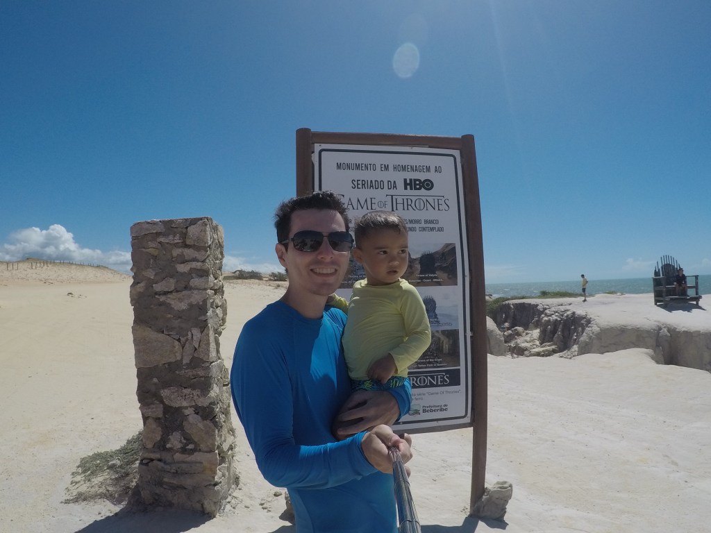 Depois seguimos até chegarmos no Monumento de Game of Thrones que foi colocado pela HBO na Praia das Fontes para o lançamento da temporada de 2019. A HBO escolheu alguns tronos ao redor do mundo, para que alguns sortudos pudessem encontrar. Pelo o que os guias nos explicaram no passeio, alguns moradores locais haviam visto esta cadeira logo que ela foi colocada, mas havia um guardião próximo dela, todo de preto e com uma arma de ferro na mão. Eles acharam que era algo de feitiçaria ou macumbaria e ficaram com medo de aproximar. Uma semana depois, turistas começaram a surgir procurando a cadeira, até que encontraram e ganharam o prêmio que a HBO estava oferecendo. Os moradores locais não receberam o prêmio mas foram citados em algumas matérias que foram feitas na época. Imagina só, do nada encontrar no meio das dunas uma cadeira enorme de fero com um homem vestido de preto e com uma arma na mão… O que você faria?!