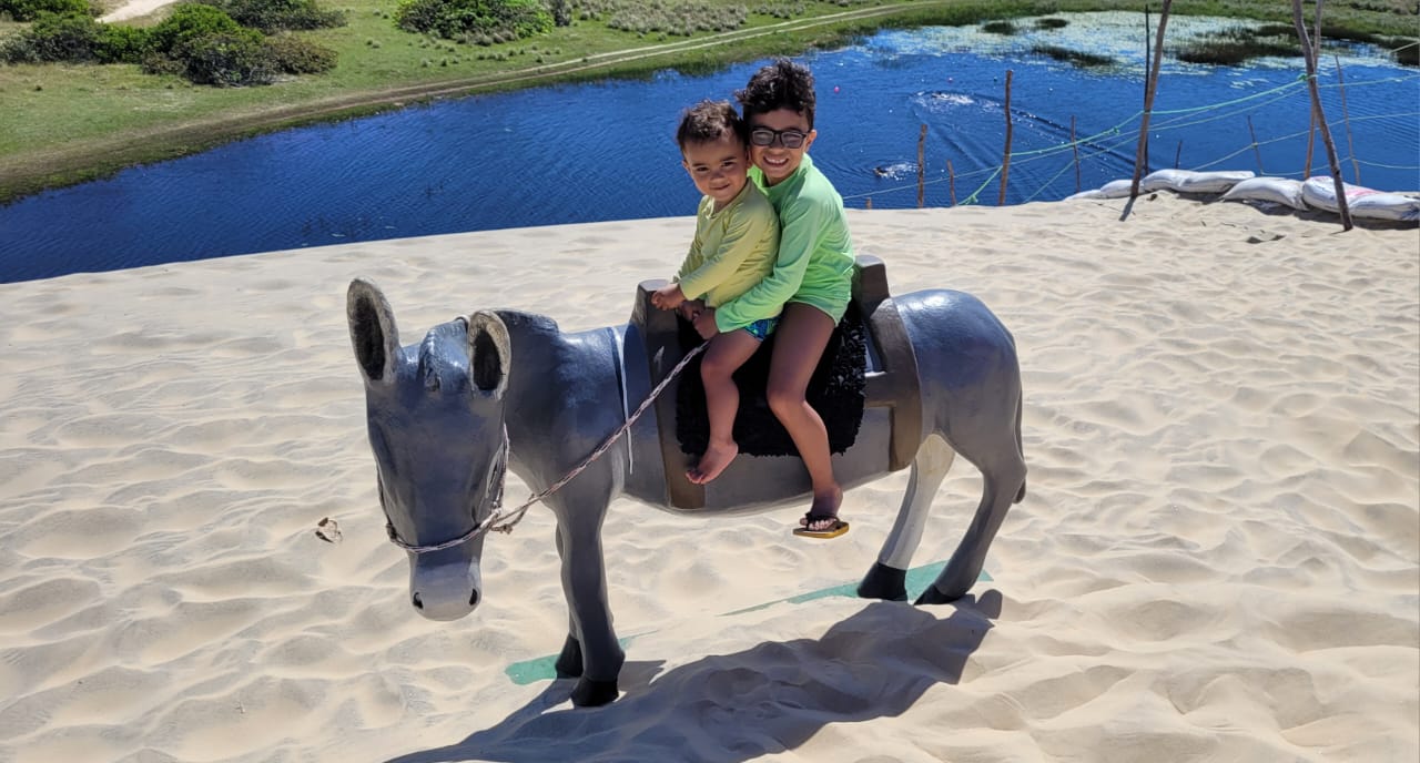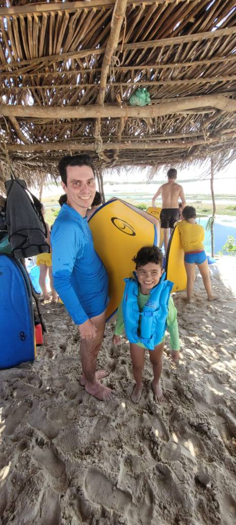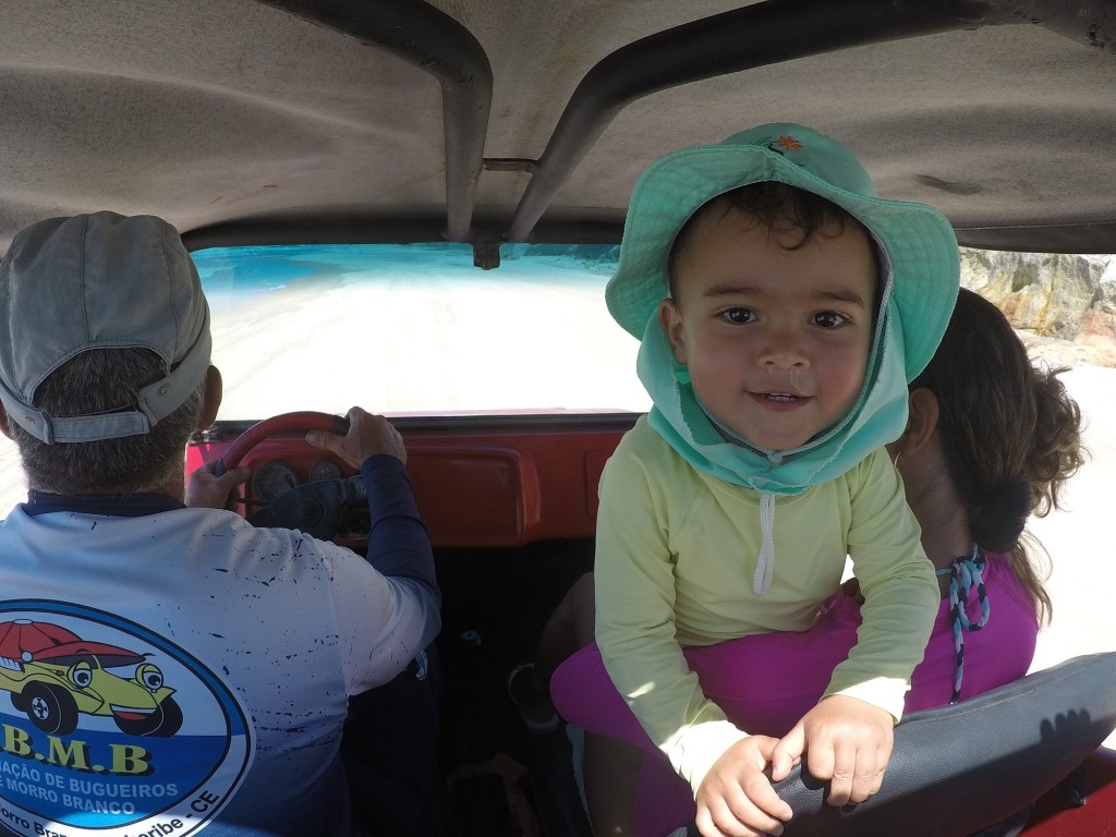 Com isso, entramos em um dos restaurantes para trocar as crianças e passar protetor, enquanto eles direcionavam um bugueiro para nos levar. Frisei com eles que precisava ser alguém com bastante paciência com crianças, pois estaríamos com o Arthur (7 anos) e Vitor (2 anos) juntos. O senhor que nos direcionaram foi maravilhoso! O passeio era para durar cerca de 2h30 a 3h e ficamos cerca de 4h30. O custo do passeio, que é tabela era de R$ 250,00, pagos diretamente ao bugueiro. Como estendemos muito e ele foi MUITO simpático e atencioso, acertamos com ele R$ 350,00 via PIX.