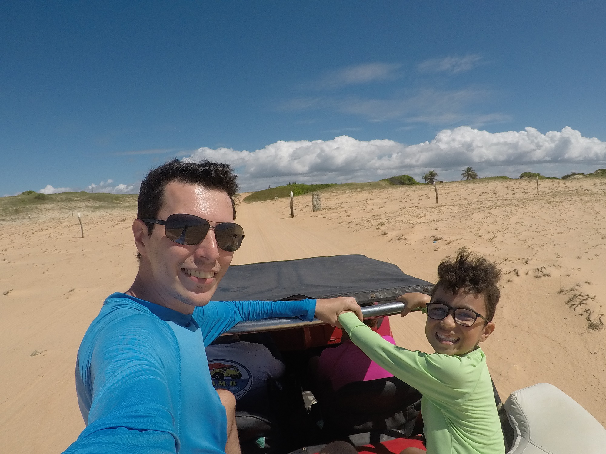 Com isso, entramos em um dos restaurantes para trocar as crianças e passar protetor, enquanto eles direcionavam um bugueiro para nos levar. Frisei com eles que precisava ser alguém com bastante paciência com crianças, pois estaríamos com o Arthur (7 anos) e Vitor (2 anos) juntos. O senhor que nos direcionaram foi maravilhoso! O passeio era para durar cerca de 2h30 a 3h e ficamos cerca de 4h30. O custo do passeio, que é tabela era de R$ 250,00, pagos diretamente ao bugueiro. Como estendemos muito e ele foi MUITO simpático e atencioso, acertamos com ele R$ 350,00 via PIX.