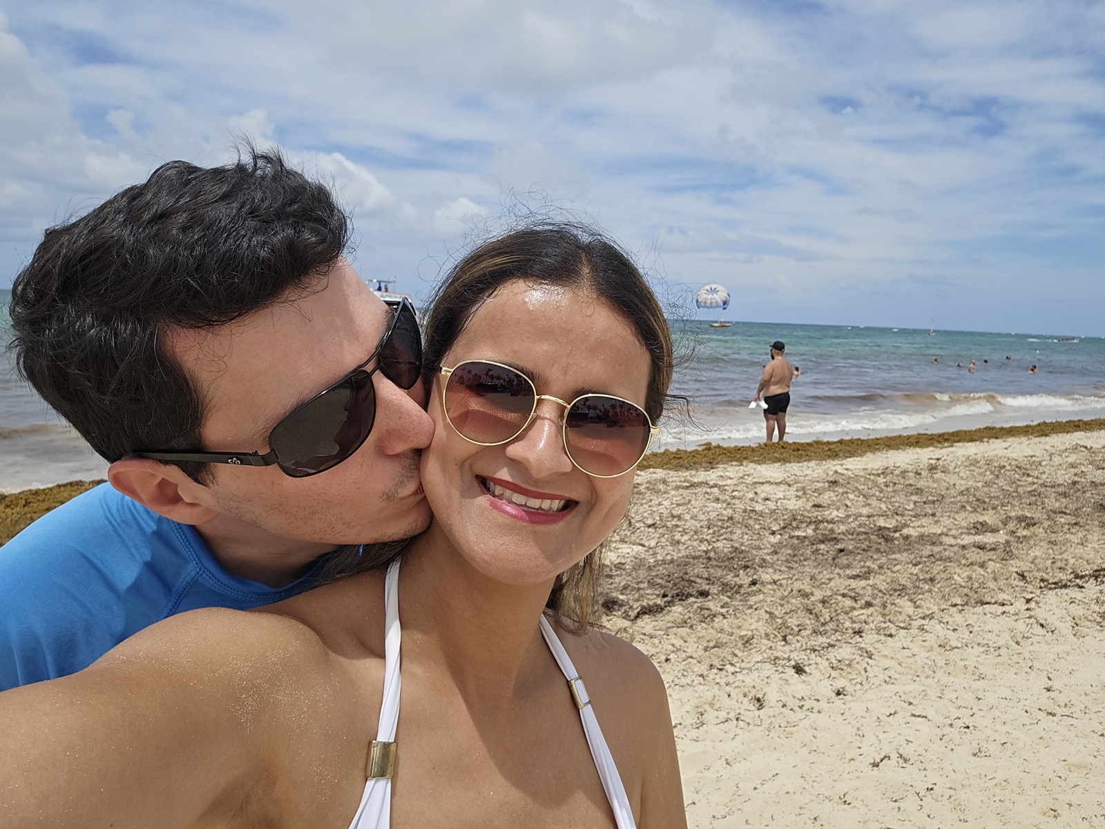 Essa é a praia que fica em frente do Resort Grand Bahia Príncipe. Os dias de praia, quando não tinhamos passeios, era nela que ficávamos. Infelizmente a praia tinha MUITO sargaço… Apesar do Resort ficar o dia inteiro passando com máquinas para remover, o que vem do mar é muito maior do que o que a capacidade das máquinas de removerem. A parte da manhã era mais complexo, mas na parte da tarde ficava melhor, com menos sargaço e o azul do caribe tentava aparecer.