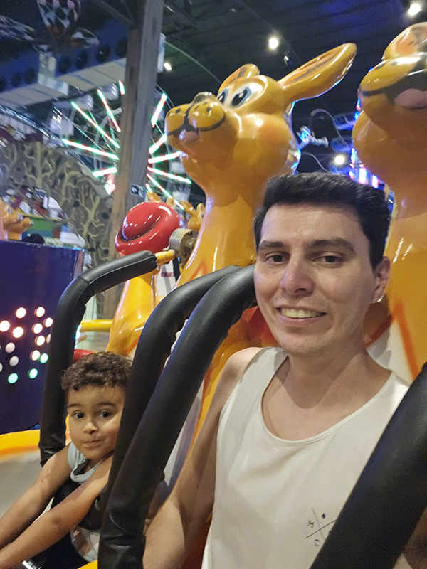 Depois do almoço, fomos para a área do parque de diversões — e aqui fica bem claro o público-alvo do Animália.