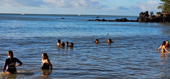 👉 Caminhar para o lado direito da praia, até ficar bem em frente ao Morro do Careca.