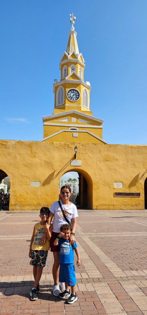 A entrada principal da cidade amuralhada é marcada pela imponente Torre del Reloj, construída no século XVIII. O relógio foi instalado no século XIX e se tornou um dos maiores símbolos da cidade. Passar por esse portal é como atravessar séculos de história em poucos passos. Logo adiante está a tradicional Plaza de los Coches, que no período colonial funcionou como mercado — inclusive de pessoas escravizadas, um capítulo duro, mas essencial para compreender a formação cultural e social da cidade.