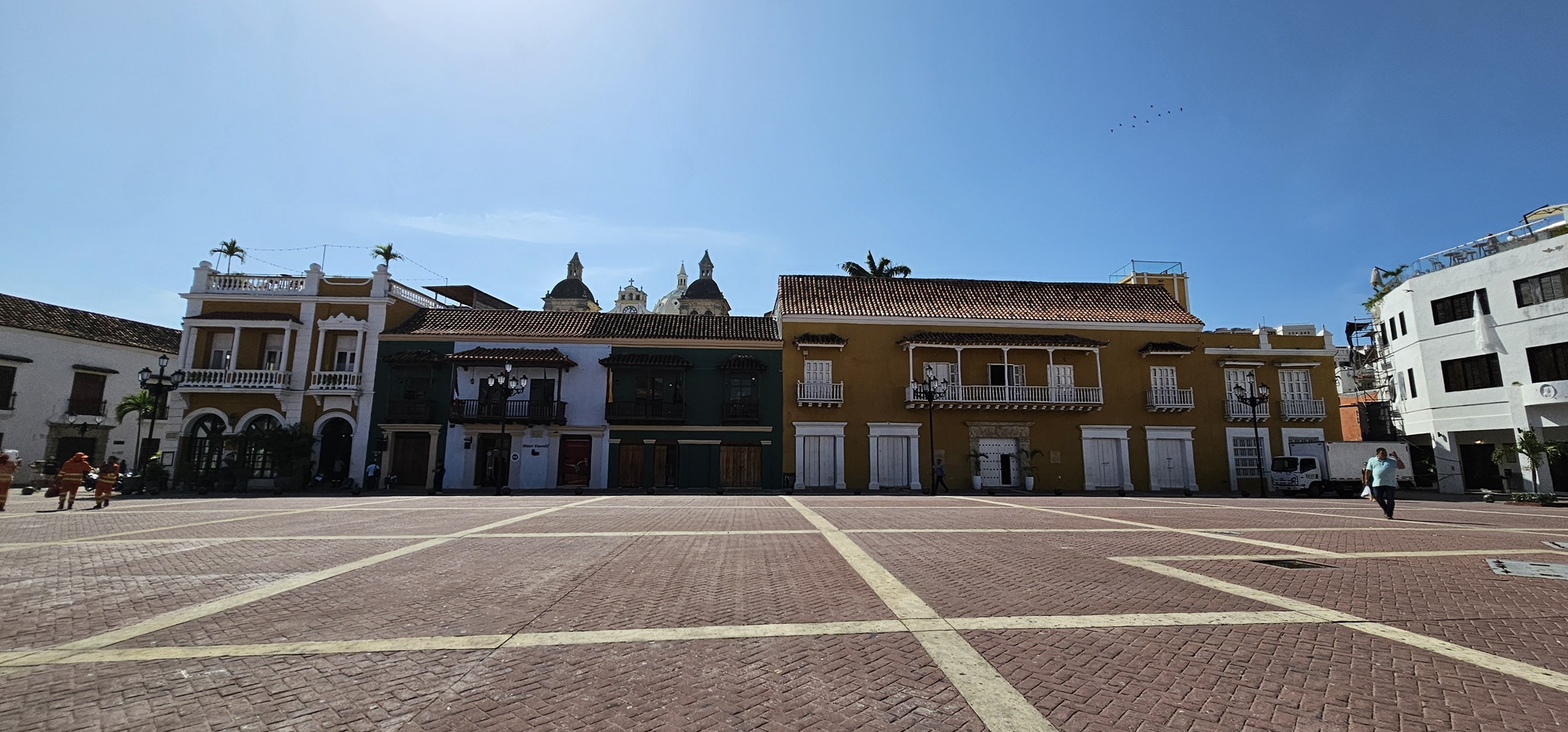 Hoje, a praça é vibrante, cercada por edifícios coloniais coloridos e cheia de vida. As muralhas que cercam o centro começaram a ser erguidas no final do século XVI justamente para proteger Cartagena dos ataques de piratas, incluindo o famoso corsário inglês Sir Francis Drake. Caminhar por cima dessas muralhas é uma das experiências mais incríveis da cidade: de um lado, o mar do Caribe; do outro, as cúpulas das igrejas e os telhados coloniais.